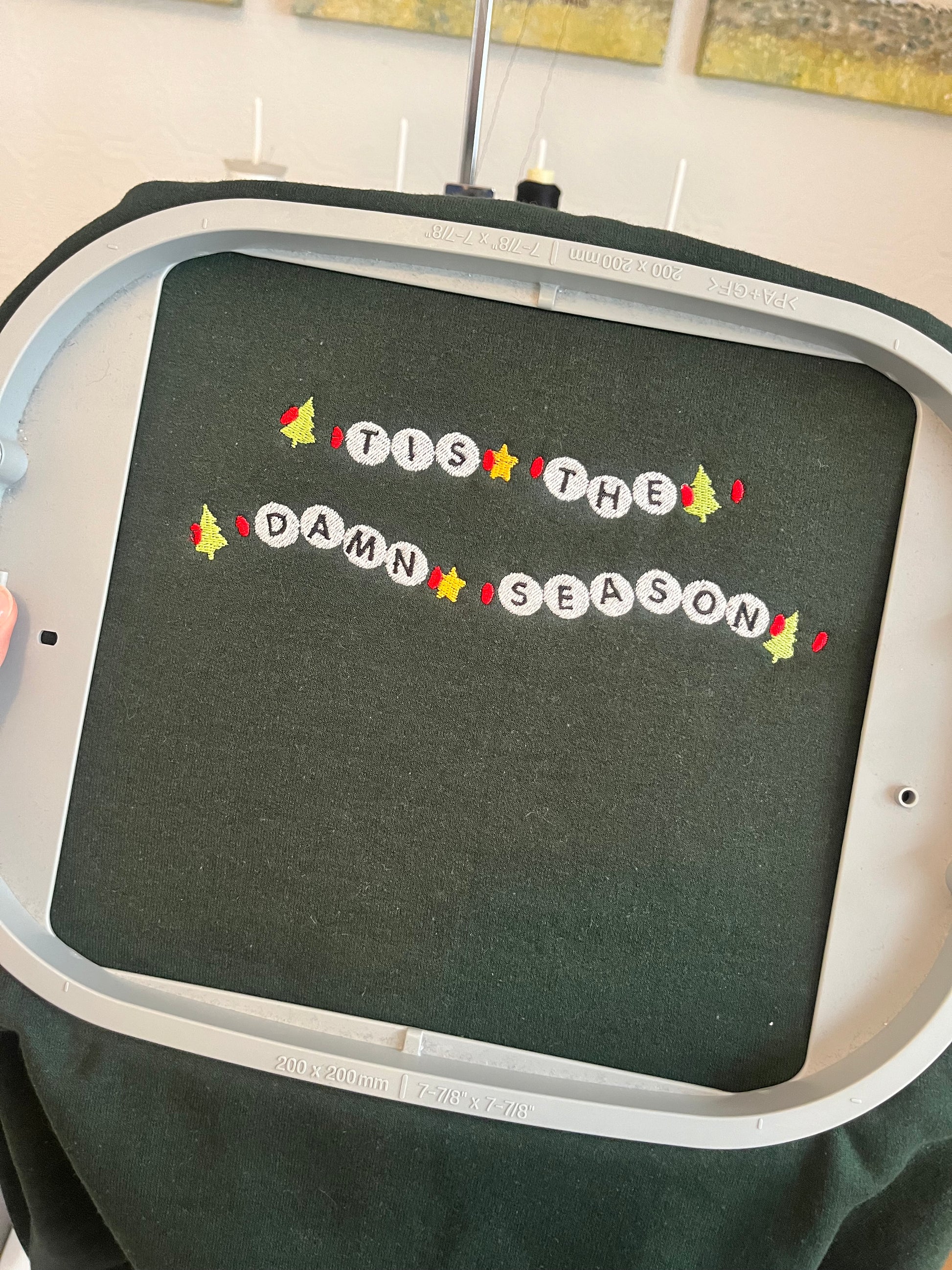 FAULT: the stitching for the trees and stars are not perfectly aligned